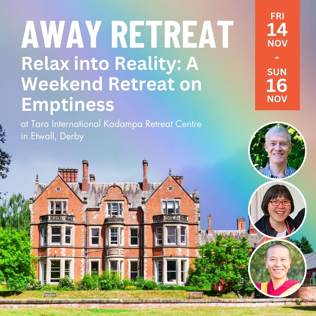 Join us for a deeply peaceful weekend retreat in the beautiful setting of Tara IKRC, nestled in the tranquil English countryside. In this special away retreat, we will dive into the profound teachings on emptiness — the ultimate nature of reality – guided by experienced Kadampa Resident Teachers from Heruka KMC – Kadam John, Duldzin Dragpa Centre – Kadam Ai Peng and KMC London – Gen Kelsang Zoma.